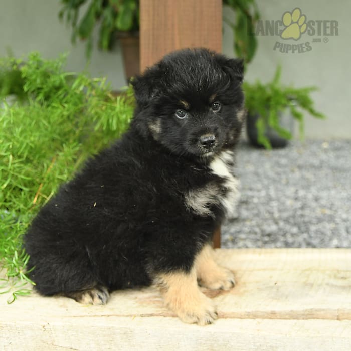 Our Black Teddy bear Tanya has a wonderful thick haircoat and dark eyes. A white spot on her chest finishes up her look. She loves her crinkly toys and a ball will make her tail wag happily!
