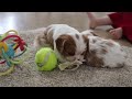 Hello everyone! Meet our precious little boy, Zeke. he is a beautiful blue-merle Cavapoo puppy with a beautiful coat of soft hair! Zeke has a very sweet temperament and is very well socialized! he plays super well with kids and loves giving kisses! His momma is a beautiful cavalier and dad is a mini poodle. Zeke will be between 10 and 15lbs fully grown. He is sure to melt