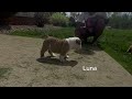 Luna is an adorable AKC English Bulldog female. She has a sweet and gentle personality. She loves to snuggle and loves kids of all ages. She is already starting to show the same wonderful intelligent traits as her parents . Mom (Joy 55 bs) is our family dog on our horse farm in Dundee Ohio.Dad (Dallas 51lbs ) is owned by a family friend.Both parents have fantastic persona