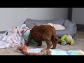 Red is a male puppy filled with high and happy energy, making him very kid friendly and ready fun spirit. He has an absolutely soft and wavy coat. many great things about these multigen/F2b puppies is that they are at least 62% poodle with 37.5% golden retriever making them highly intelligent, low shedding, allergy friendly with a more curly and wavy coat. These puppies