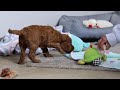 Bella is a mix between the mom and her sire puppy dad also adding a few specks of white, making her stand out from the pack. She's extremely happy during social play making her an ideal companion for small kids 1950 many great things about these multigen/F2b puppies is that they are at least 62% poodle with 37.5% golden retriever making them highly intelligent, low sheddi