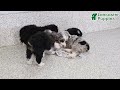 Meet Leo! He is an adorable mini aussiedoodle f1b and he is almost 4 weeks old. He has a beautiful white coat with tan spots. He is the most playful one out of his litter and has begun exploring and h