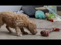 Raised with early enrichment and gentle handling, Cloud is a light red and white female miniature poodle puppy growing into a confident, well-adjusted companion. She receives daily interaction and tho