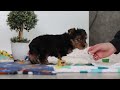 Nemo is a precious little one. His coat is super thick and soft. He is social and loves toys and playing with the other puppies. If you are looking for a really fun little companion for your kids and family then he is just perfect! He is tracking to be 6-7 lbs full grown. His mom is our 7 lb Yorkshire Terrier and his sire is our 5 lb Maltese. They are the adults in the pi